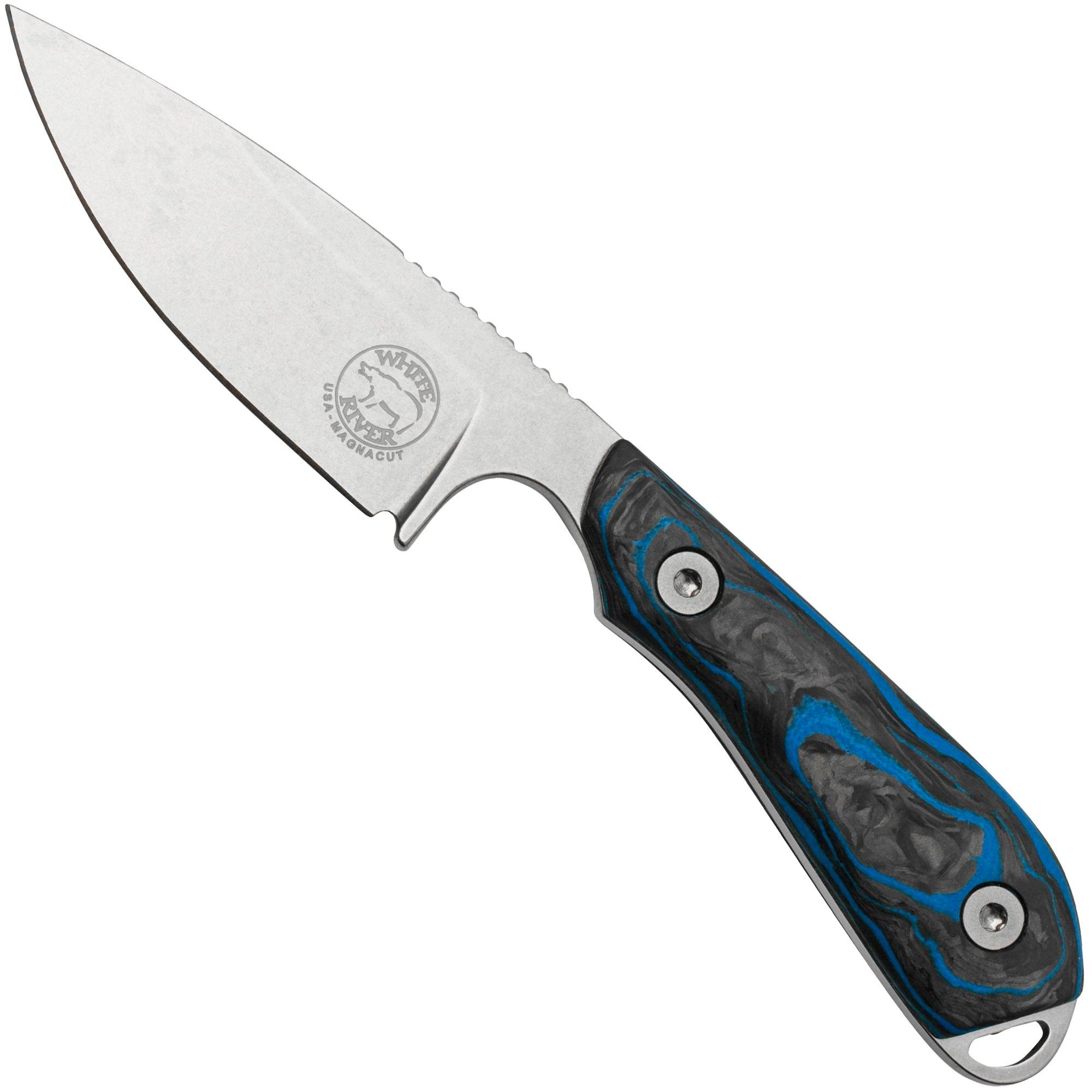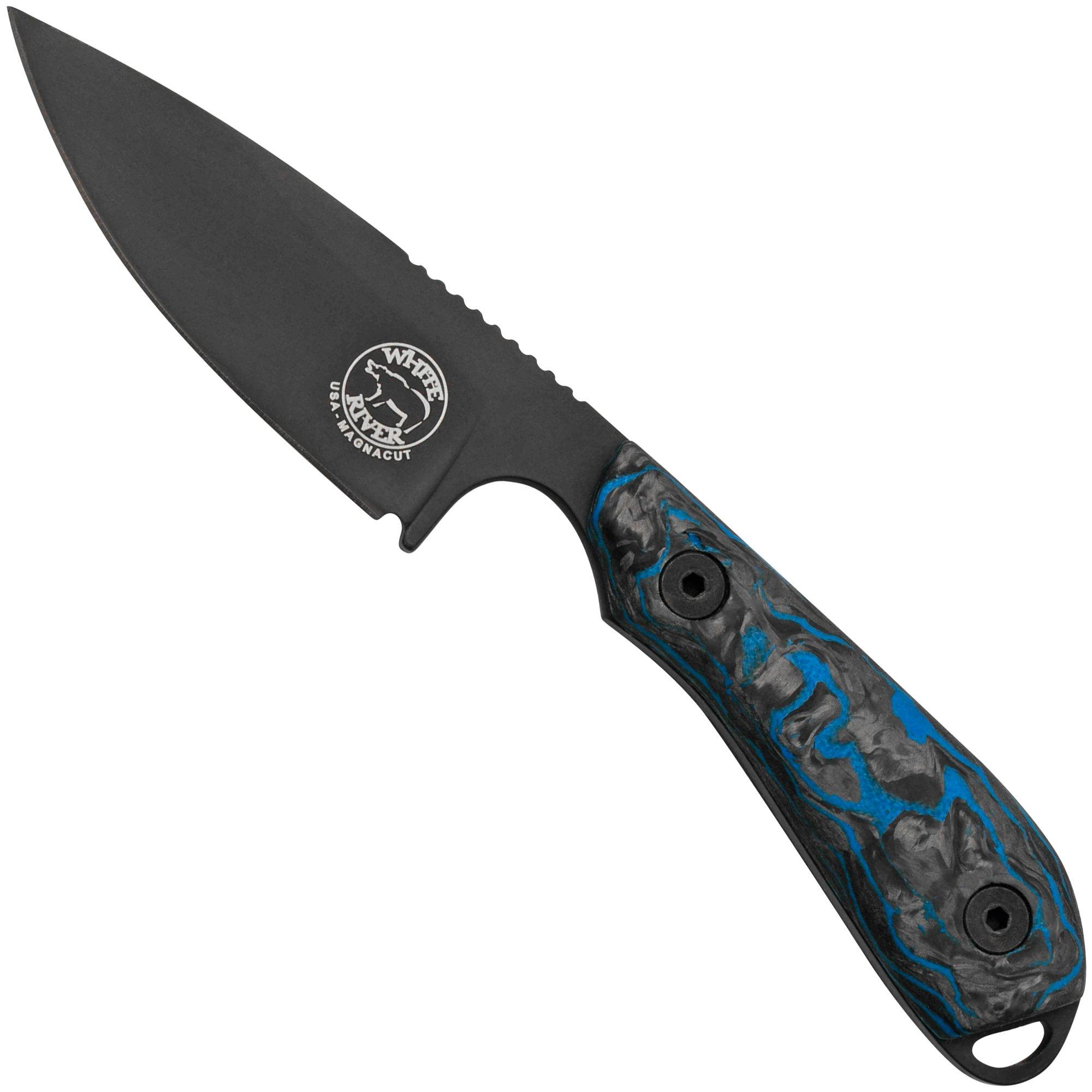 White River M1 Custom Shop Limited Edition 2023, WRM1-LIM-2023-CBI, Black Blade, Marbled CF Blue G10, Kydex Scheide, Feststehende Messer